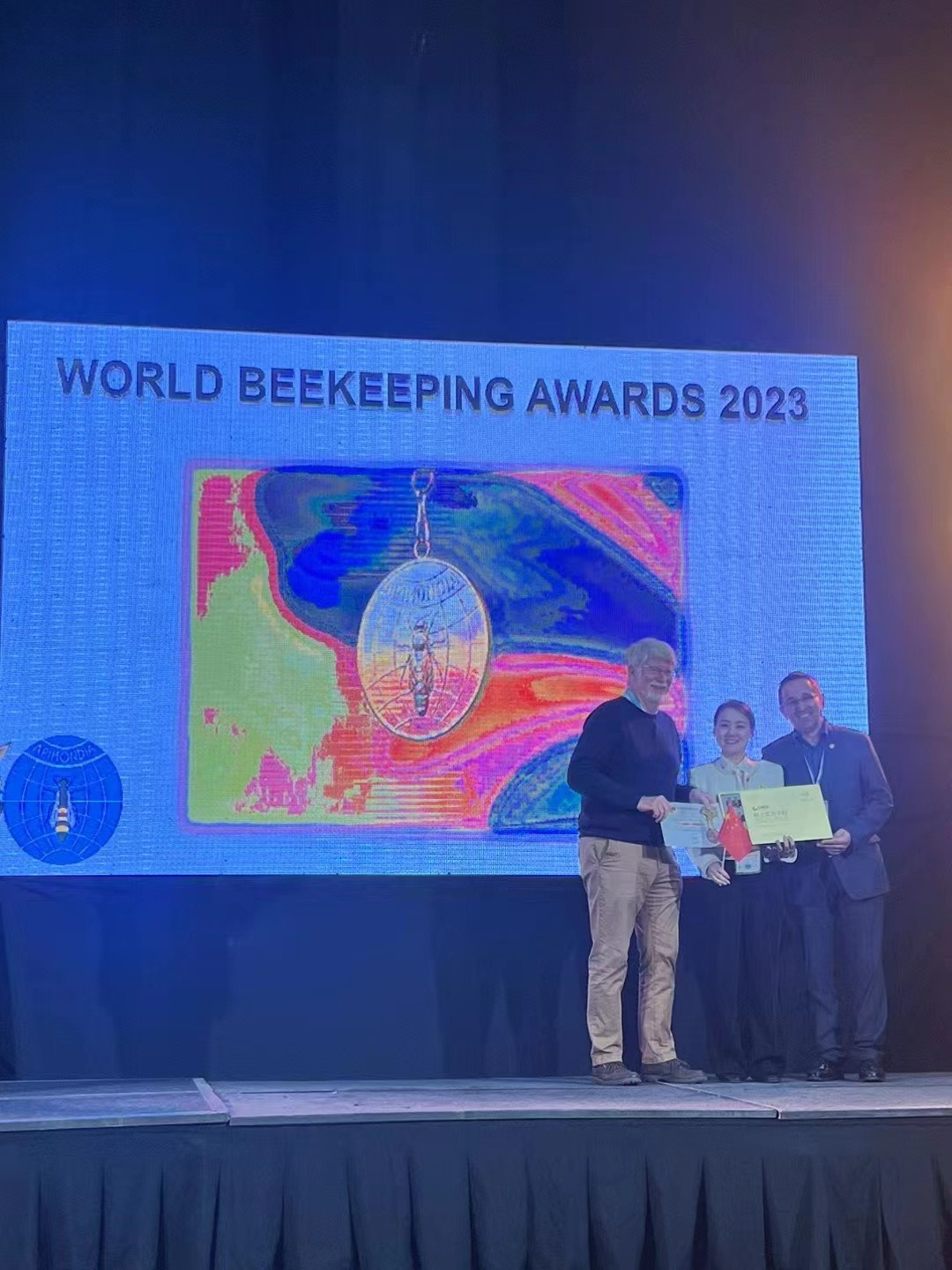 9月4日-8日,國際蜂聯(lián)(APIMONDIA) 第48屆國際養(yǎng)蜂大會暨博覽會在智利圣地亞哥舉辦。來自全球五大洲130多個國家的科學(xué)家、政府官員、企業(yè)代表、養(yǎng)蜂人等參加了世界蜂業(yè)界最大盛會。北京蜜蜂堂作為本次受邀出席單位,閃耀亮相本屆國際蜂聯(lián)大會并獲得大獎,成為本場最佳品牌之一!