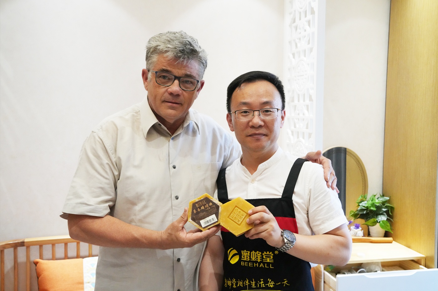 6月5日國際蜂聯(lián)蜂療科學(xué)委員會主席在中國蜂產(chǎn)品協(xié)會副會長兼秘書長孫國峰的陪同下訪問北京蜜蜂堂,參觀蜜蜂王國博物館及體驗蜜蜂堂獨家專利產(chǎn)品蜂蠟灸療。蜜蜂堂集團副總郭誠金、蜜蜂堂外貿(mào)部副總?cè)舞磋础⒚鄯涮檬袌霾靠偙O(jiān)牛逢春等人陪同接待。