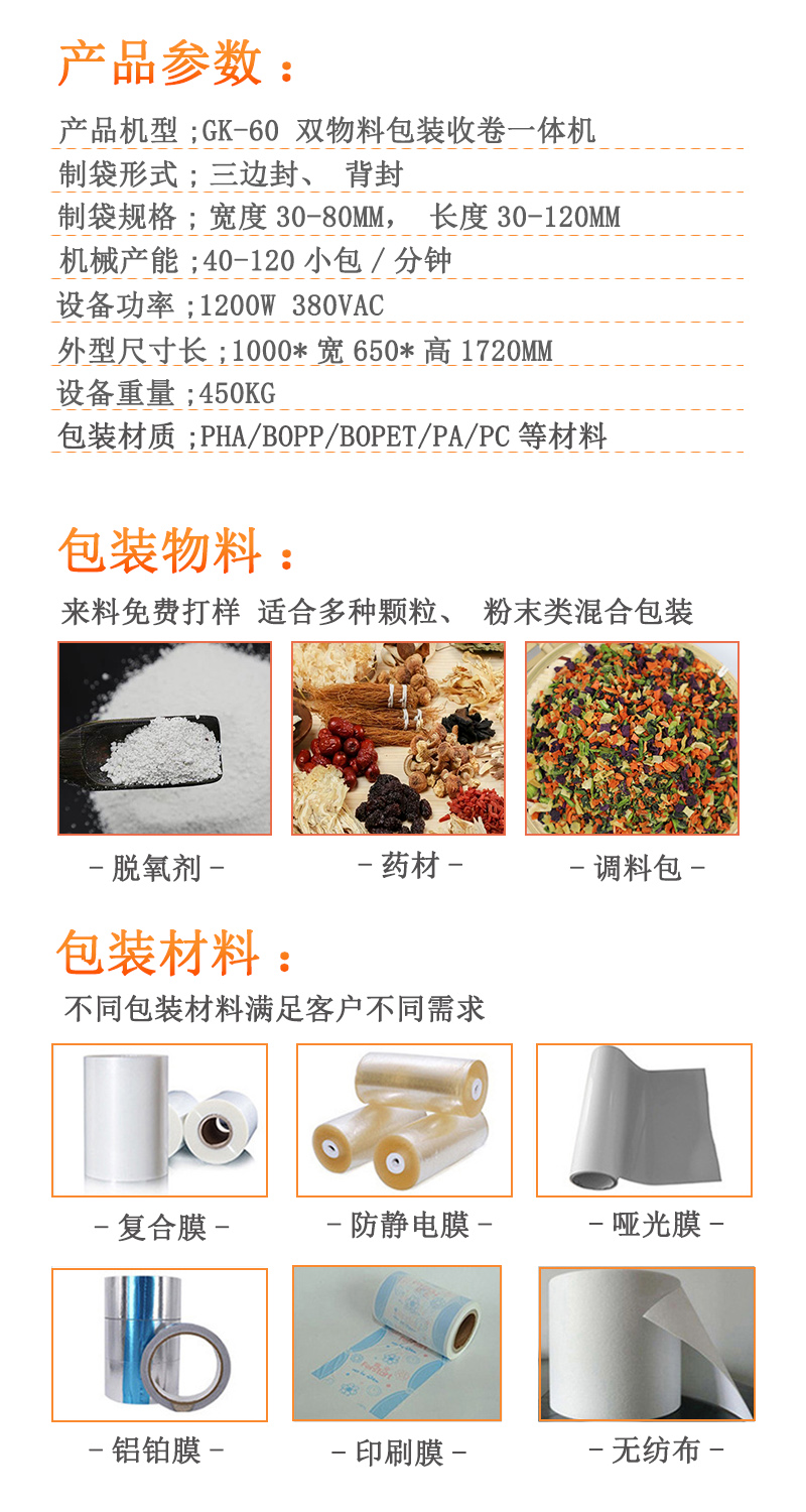 雙物料脫氧劑包裝機(jī)一體機(jī)